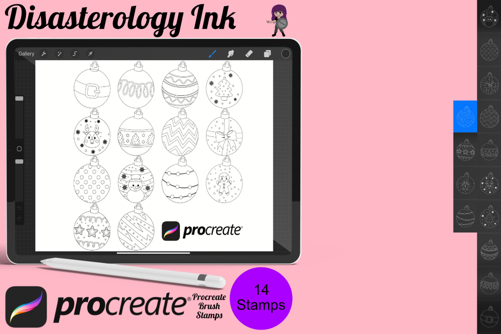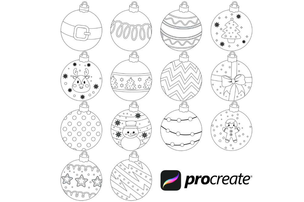 Procreate stamps save time when drawing, saving the effort of having to recreate the same thing for multiple designs and projects, save time on your design by purchasing these decorative winter Christmas baubles brush stamps so you can utilise that time on creating more beautiful art.