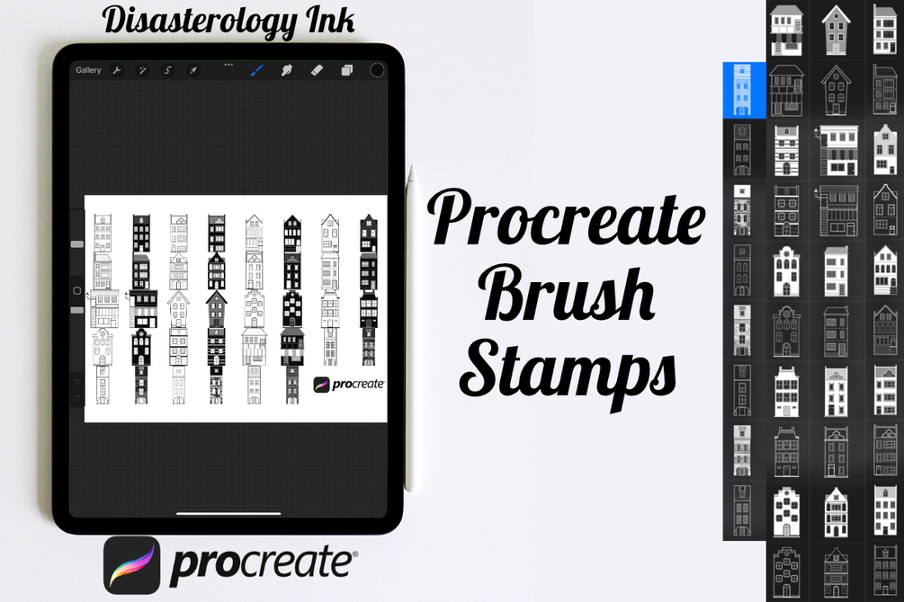Procreate stamps save time when drawing, saving the effort of having to recreate the same thing for multiple designs and projects, save time on your design by purchasing these cityscape building brush stamps so you can utilise that time on creating more beautiful art.