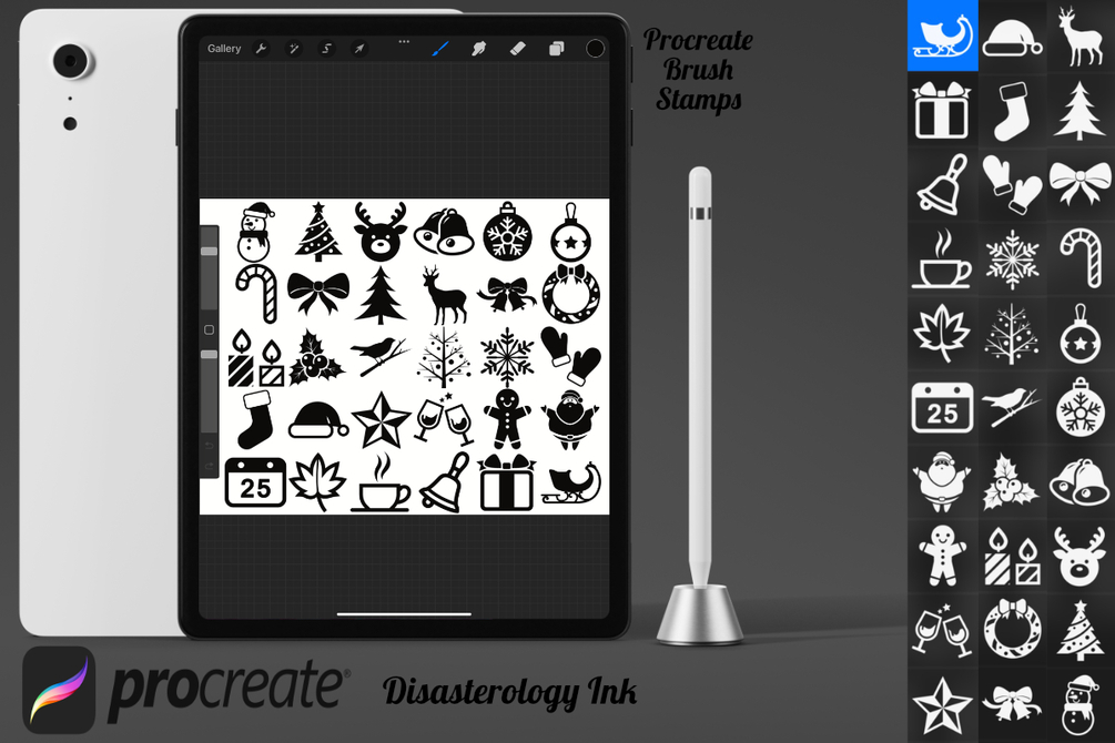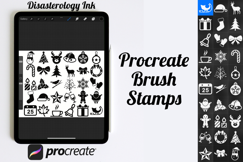 Pack of 30 Christmas Procreate Stamp Brushes! These Christmas winter stamps are perfect for making illustration projects or any procreate purpose. You can use these in any colour or opacity and they can be resized to best fit your art. You need Procreate 5.0.8 or 5X, an iPad, and an Apple Pencil. Also, these stamp brushes are not pressure sensitive and can be used with third party stylus, Apple Pencil or even your finger. You can change the colour, size and opacity of these stamps.