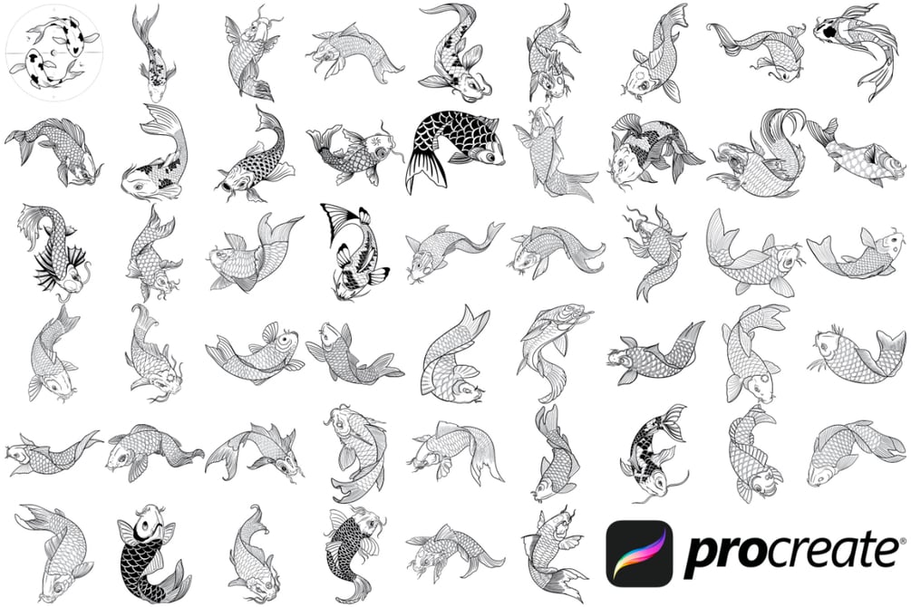 Koi Fish Set 2 Procreate Brush Stamps, 51 Koi Carp