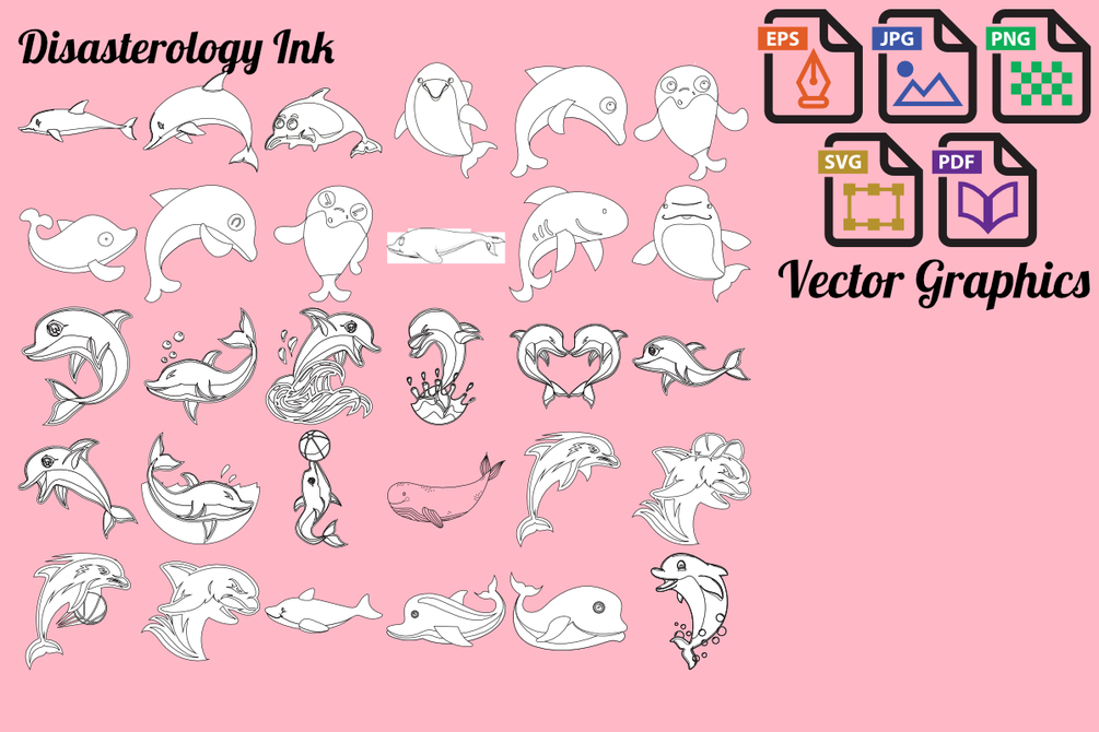 Cartoon Dolphin Set 1 Vector Graphics 30 Dolphin AI, SVG & PNG Files
